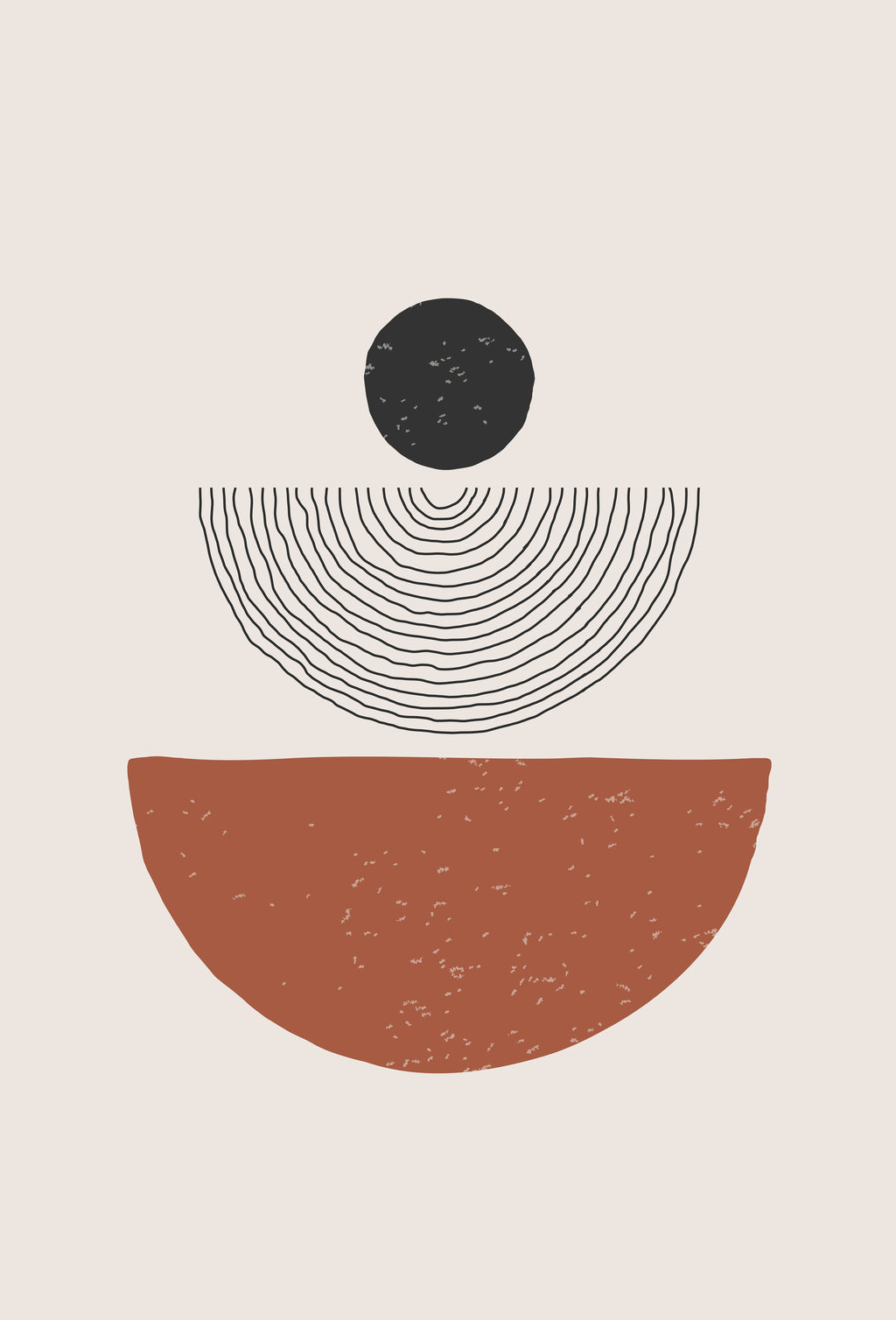 Um círculo sólido repousa sobre linhas circulares finas, criando a sensação de camadas que se expandem em ondas. A obra transmite crescimento, expansão e leveza, perfeita para espaços de reflexão e foco.