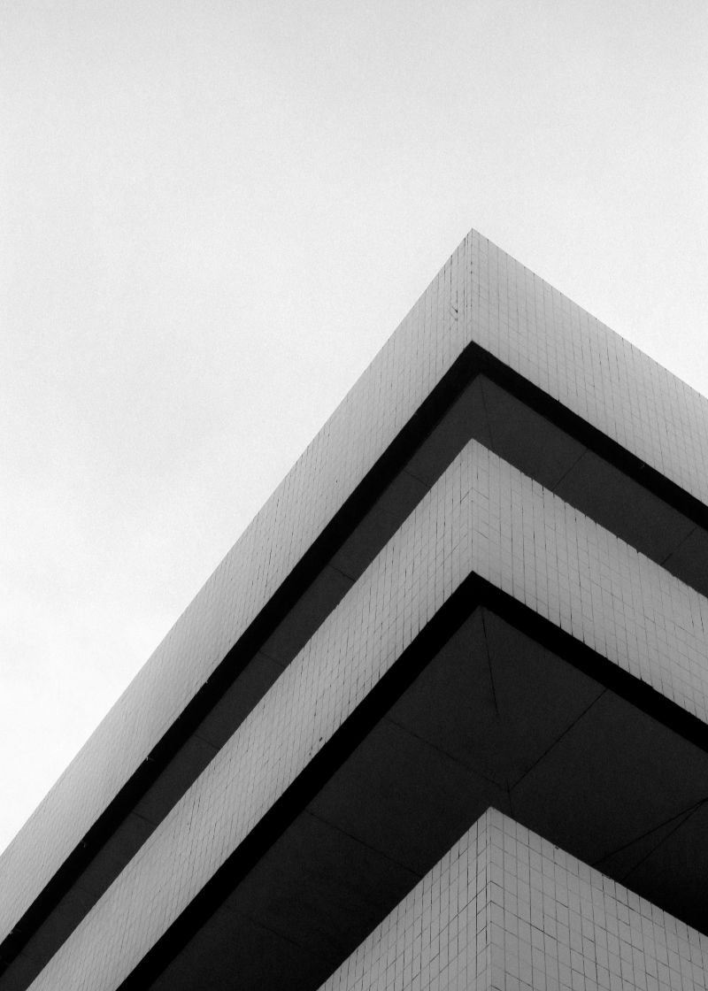 O concreto em repetição transforma-se em padrão, lembrando que até a rigidez da cidade pode ser estética.