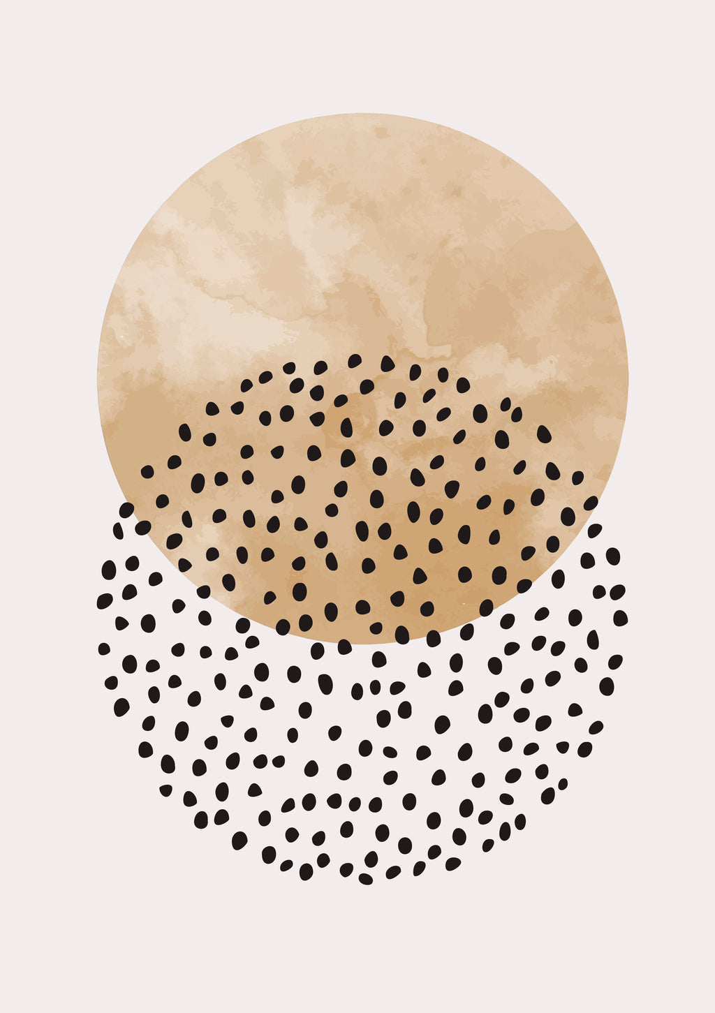 Um círculo em tom areia é atravessado por pontos pretos que evocam estrelas no céu noturno. Uma peça delicada que mistura organicidade e abstração, trazendo suavidade ao ambiente.