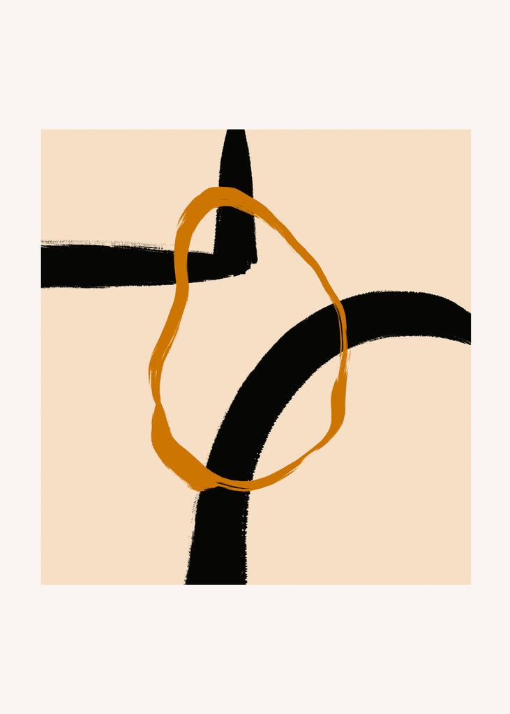 Formas geométricas e orgânicas se encontram em tons quentes e intensos, trazendo equilíbrio e energia em uma composição moderna.