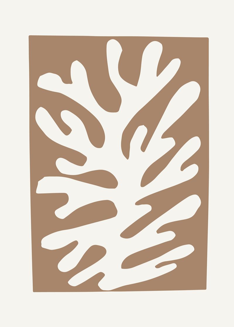 Inspirado nos recortes orgânicos de Matisse, este quadro traz formas que remetem a corais em contraste elegante de marrom terroso e fundo neutro. Uma peça minimalista que transmite equilíbrio, naturalidade e sofisticação, perfeita para ambientes que buscam serenidade com um toque artístico moderno.