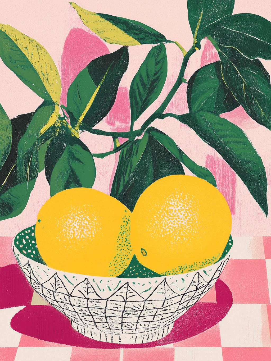 Um encontro entre a delicadeza do traço e a vitalidade dos tons cítricos. Uma obra que mistura frescor e suavidade em uma atmosfera alegre e descontraída.