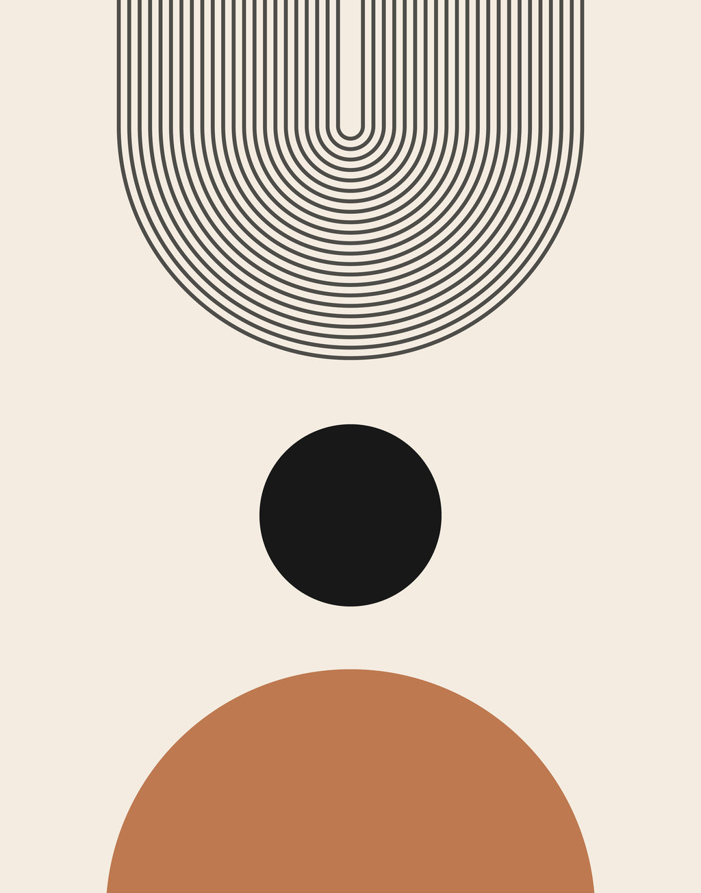 Formas sobrepostas em tons terrosos constroem um jogo de peso e leveza. Uma obra que reflete sobre ordem, simplicidade e contemplação.