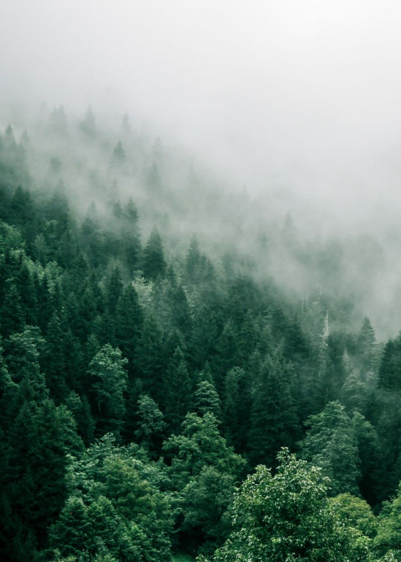 Na densidade da neblina, o verde se disfarça em camadas, guardando segredos que só o vento conhece.