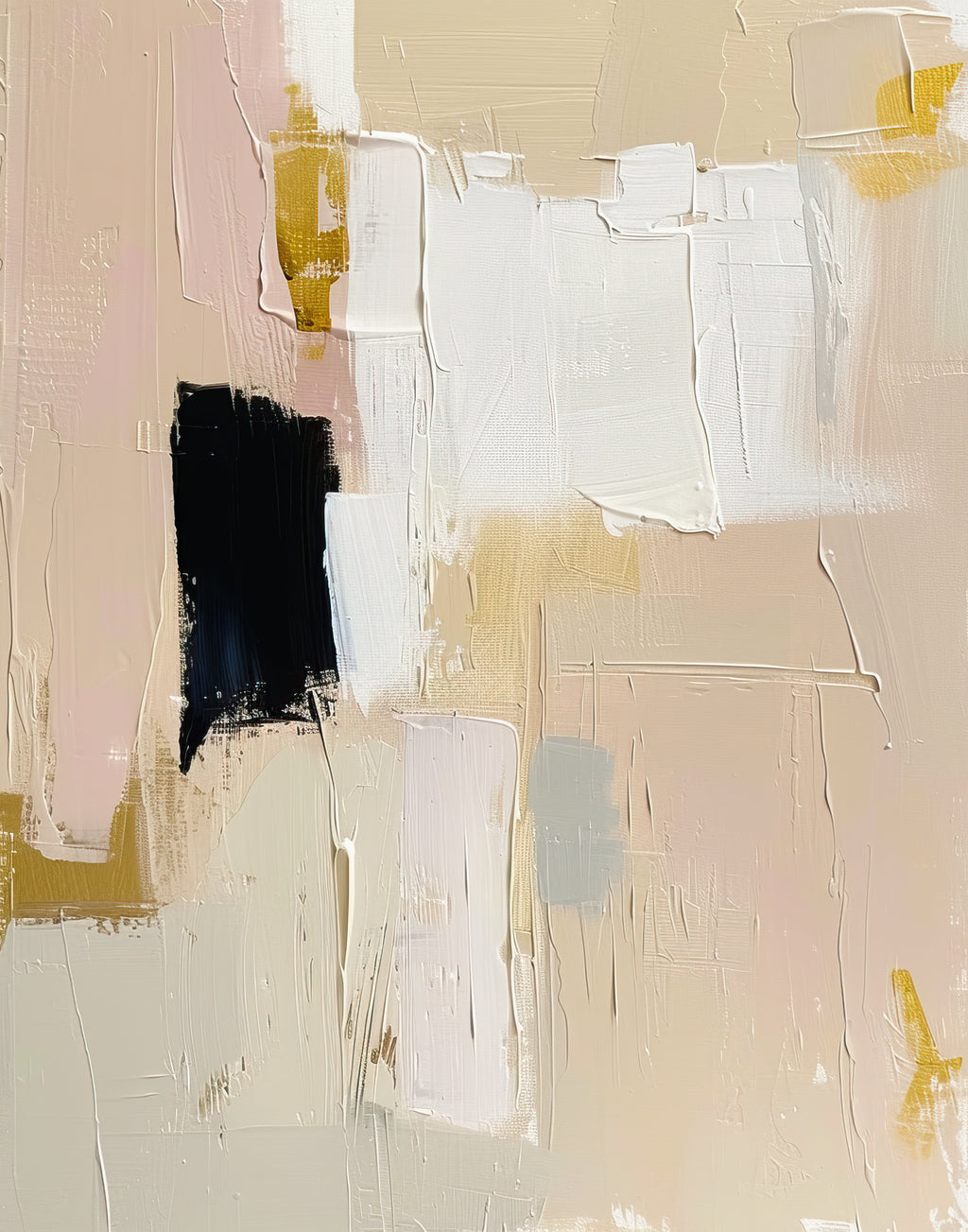 Traços largos e curvos em preto e cinza cortam a tela como ondas de energia. O dourado sutil aparece como luz no meio do movimento, trazendo vida e vibração à peça.