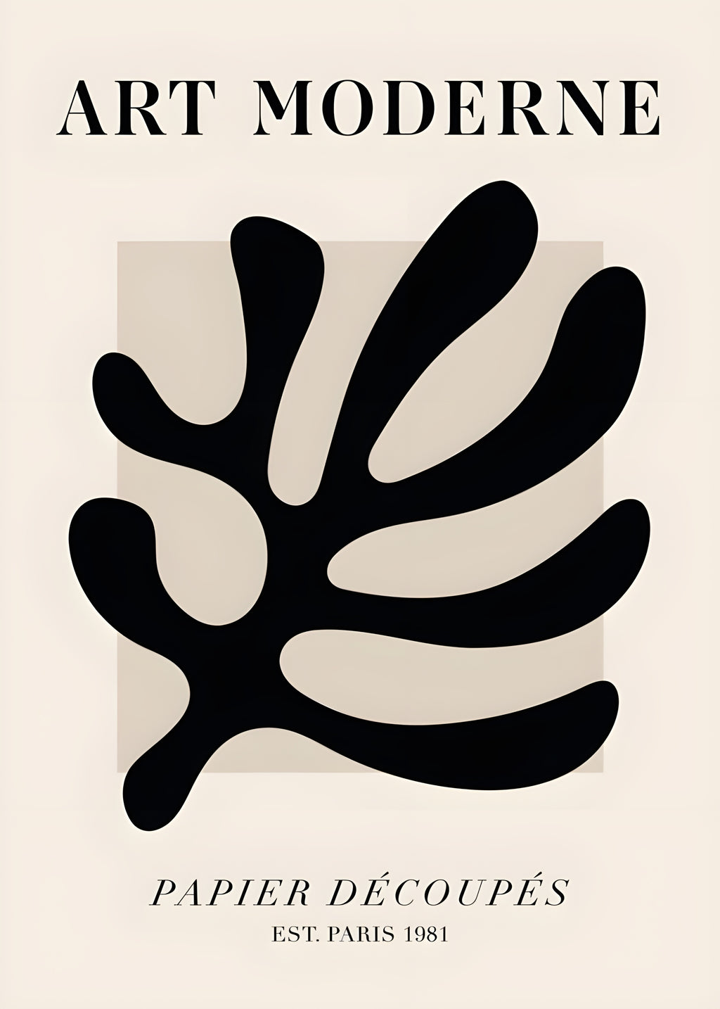 Composição em preto sobre fundo bege, lembrando uma folha ou alga marinha. A peça transmite equilíbrio entre o natural e o geométrico, ideal para salas e escritórios que pedem serenidade e design atemporal.