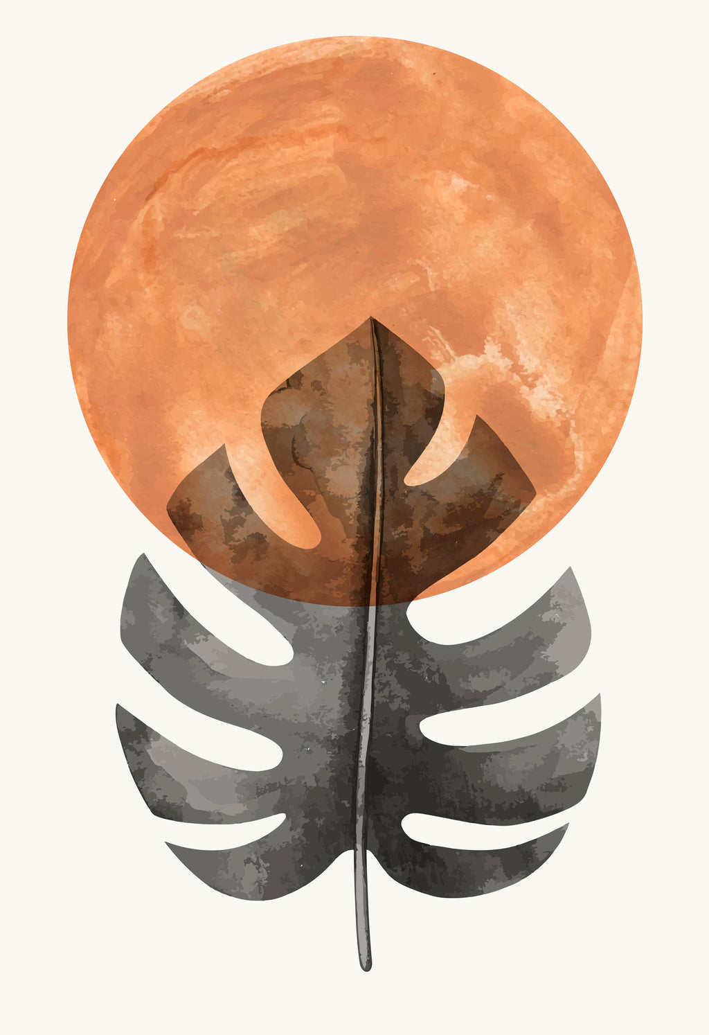Uma folha em tom terroso que se mistura ao sol alaranjado, trazendo a energia vital da natureza para dentro do lar. Uma arte que simboliza ciclos, crescimento e conexão com o essencial.