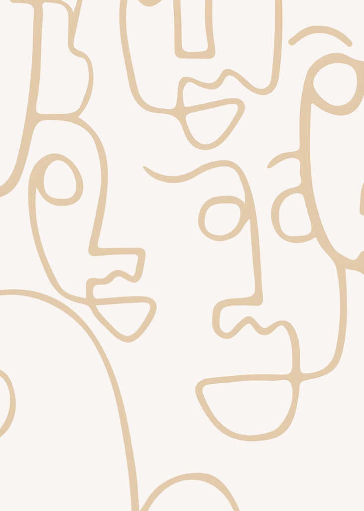 Traços finos desenham rostos de forma contínua, quase como um rabisco livre. Uma homenagem ao humano, ao abstrato e à simplicidade.
