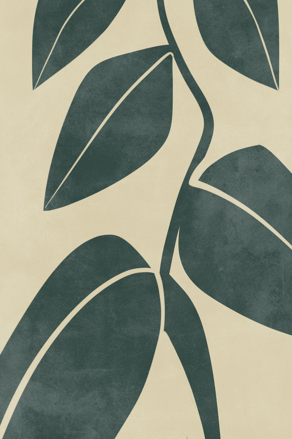 Formas simplificadas de folhas que se conectam pelo caule central. A composição é direta e limpa, celebrando a força e delicadeza da natureza.