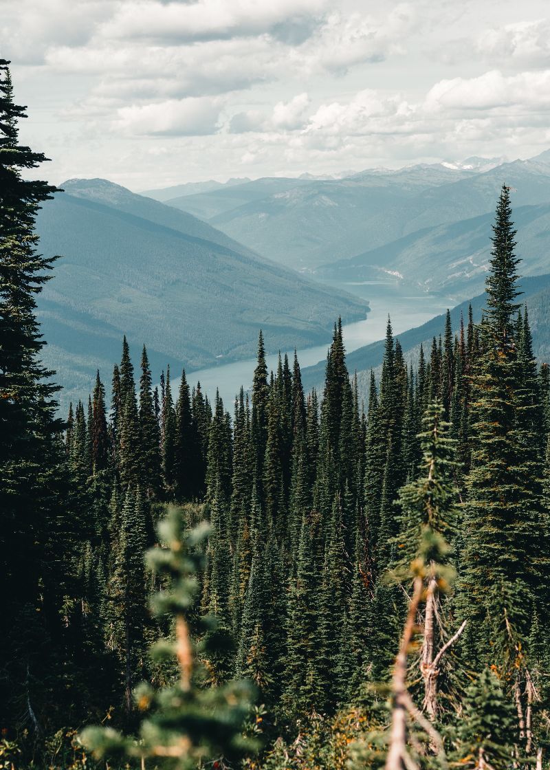 O verde intenso das árvores abre caminho para um vale escondido, onde o rio serpenteia em segredo.