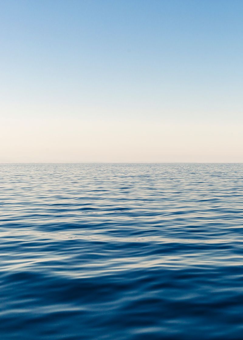 O oceano tranquilo se estende até onde a vista alcança, lembrando que a imensidão pode ser calma.