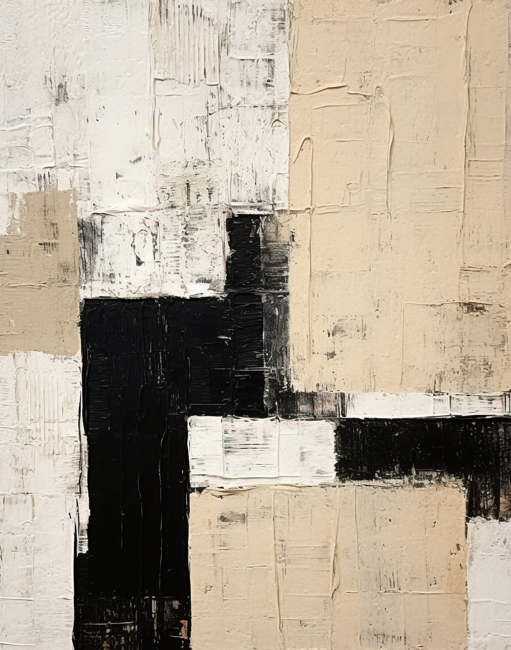 Linhas finas e retas cruzam áreas de cor densa e vazia, formando intersecções que lembram trajetos, ruas ou conexões invisíveis. Uma obra que transmite a ideia de encontros e caminhos entrelaçados.
