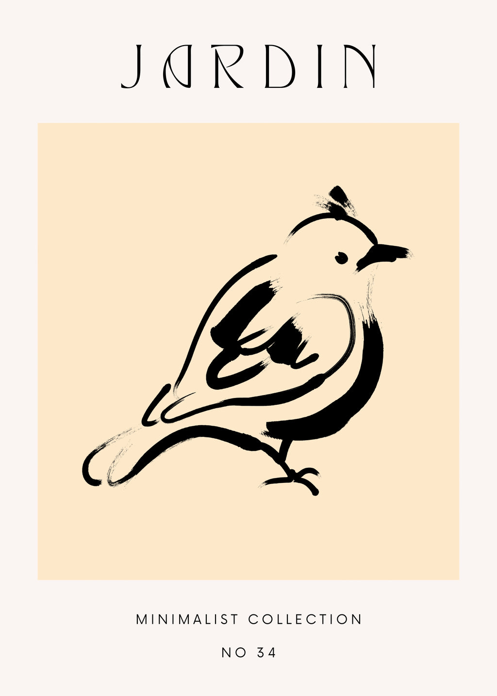 Um pássaro estilizado repousa em traços fluidos, remetendo à liberdade e ao silêncio dos jardins. Um convite à contemplação e à harmonia com a natureza.