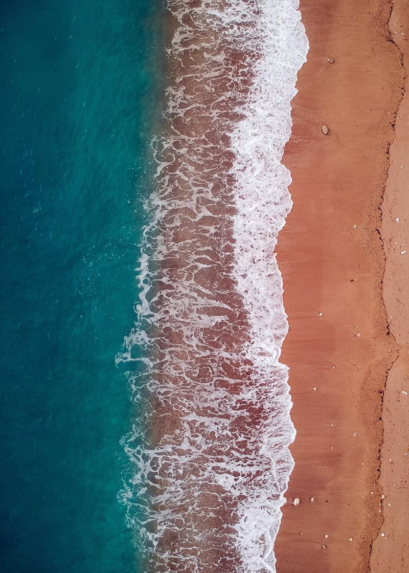 Entre o vermelho terroso da areia e o azul intenso do mar, nasce um contraste que inspira contemplação.