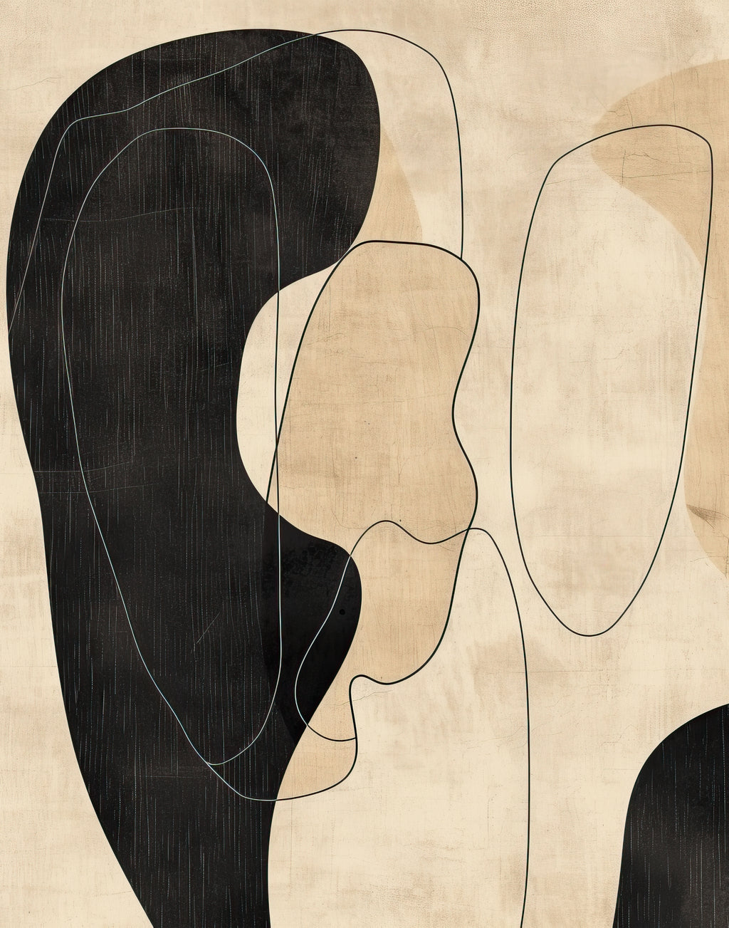 Quadro “Curvas de Energia” – Abstração Fluida em Traços Pretos