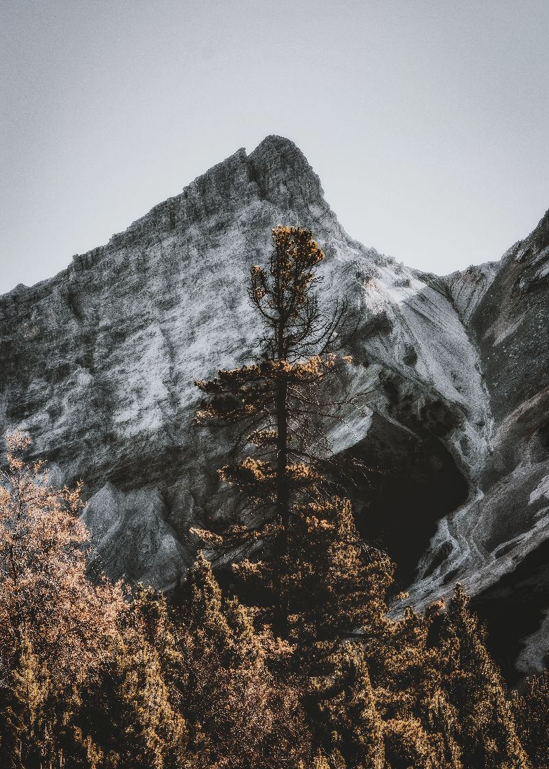 Solene e imponente, a árvore solitária se ergue diante do gigante de pedra.