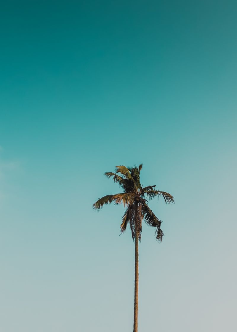 Uma palmeira solitária, simples e elegante, desenhando sua presença no horizonte.