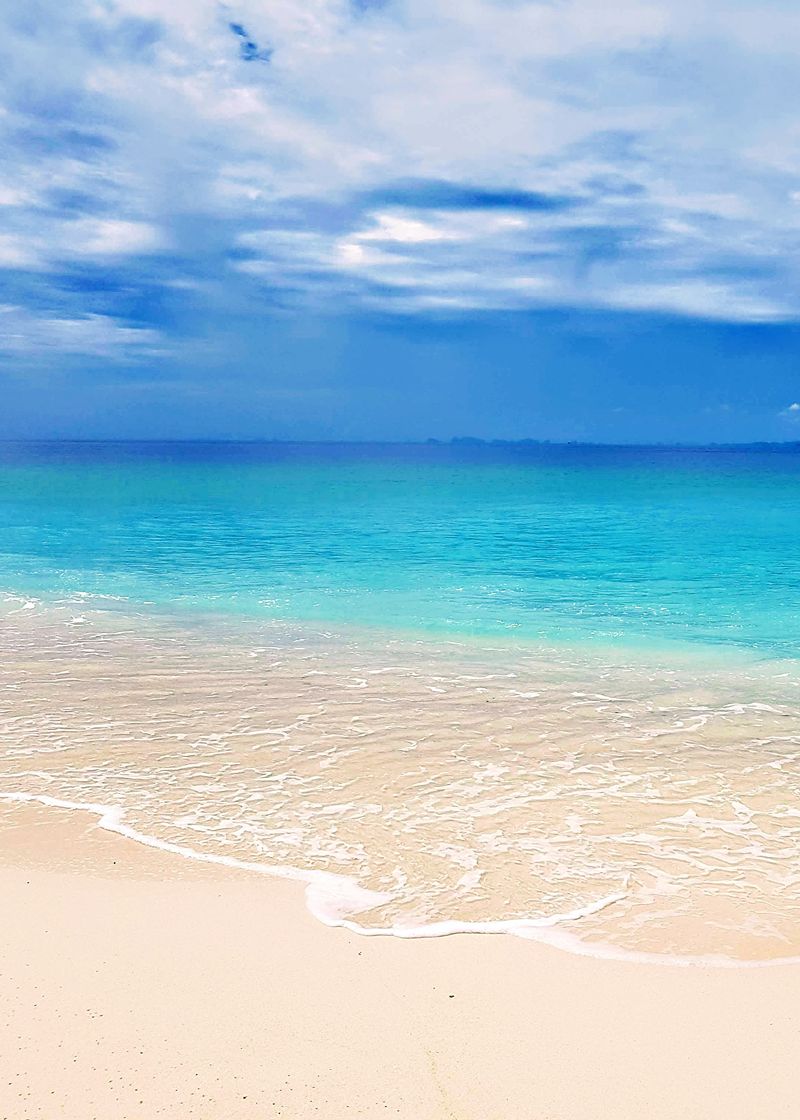 A imensidão do mar turquesa se une ao céu em um horizonte infinito de paz.