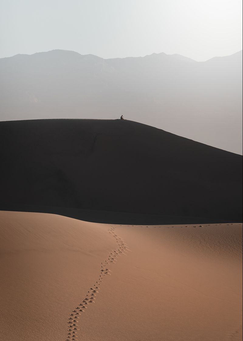 Na imensidão das dunas, cada passo gravado na areia é memória do caminho e convite ao desconhecido.