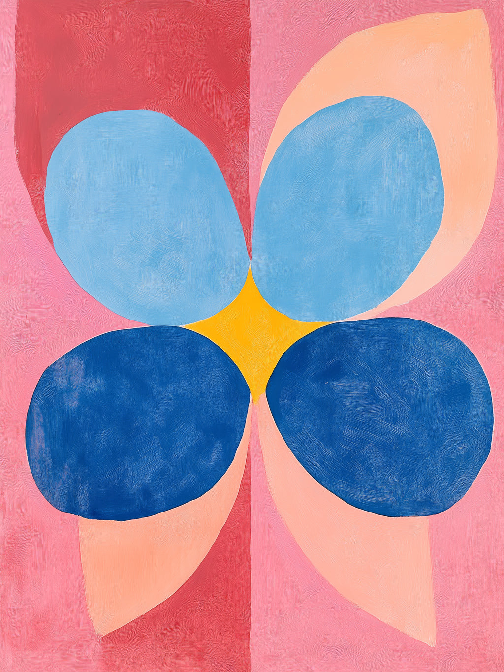Formas orgânicas em rosa, azul e amarelo se unem em um desenho que lembra uma flor estilizada, irradiando suavidade. “Ponto de Luz” é como um respiro visual: delicado, alegre e equilibrado. Uma peça que ilumina qualquer parede e desperta sensações de leveza, ideal para quartos, salas e espaços criativos.