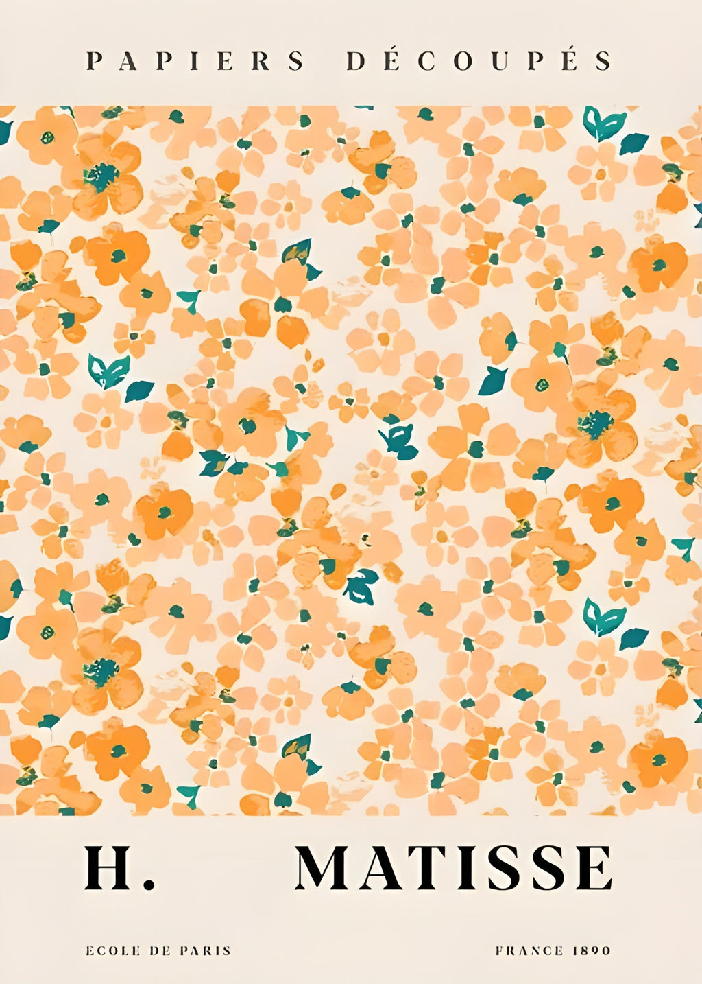 Uma explosão de flores em tons alaranjados vibrantes, contrastando com verdes sutis, transmite frescor e vitalidade. A peça é leve e alegre, perfeita para trazer a energia da primavera para dentro de casa, enchendo o espaço de cor e movimento. Matisse.