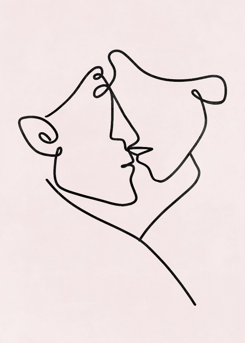 Um traço contínuo que captura o instante eterno de dois olhares que se encontram.