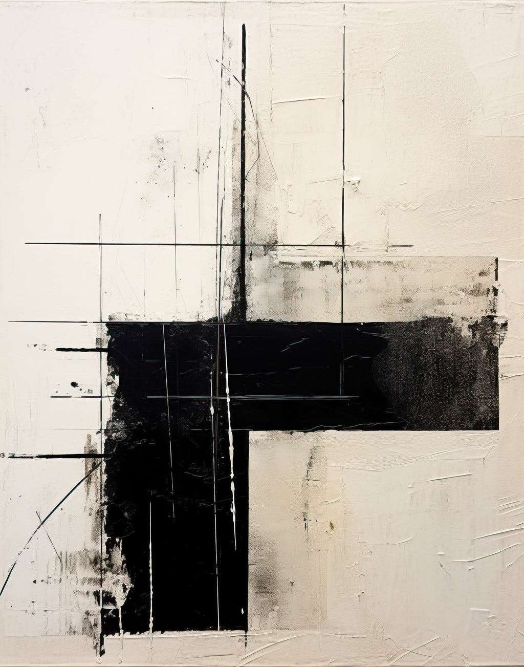 Pinceladas largas, pretas e expressivas se misturam a respingos que descem pela tela, criando movimento e intensidade. “Rastro Intenso” traduz a liberdade do gesto artístico, o impacto do incontrolável e do espontâneo. Uma peça de energia crua para quem quer marcar presença.