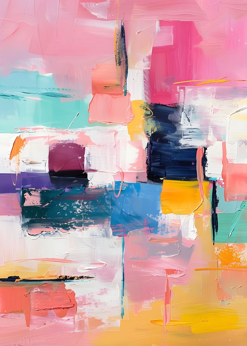 Pinceladas soltas e vibrantes que se encontram para criar um movimento cheio de emoção e modernidade.