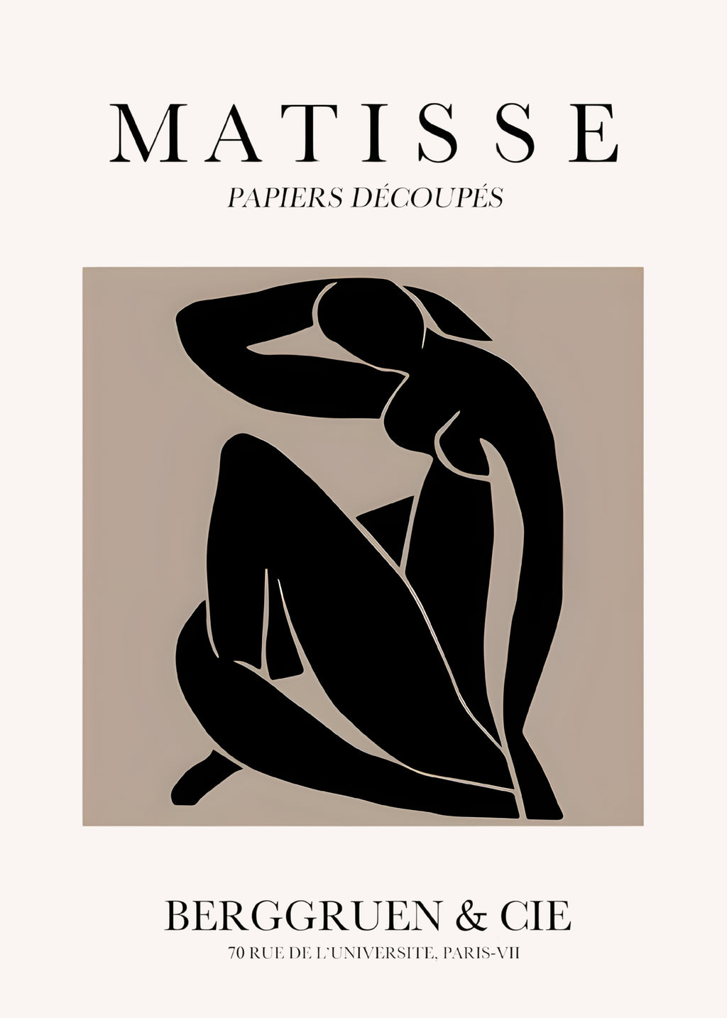 Uma figura feminina minimalista em preto, com postura introspectiva, equilibra força e suavidade. Inspirado nos papéis recortados de Matisse, evoca intimidade e contemplação, perfeita para dar profundidade a espaços modernos.