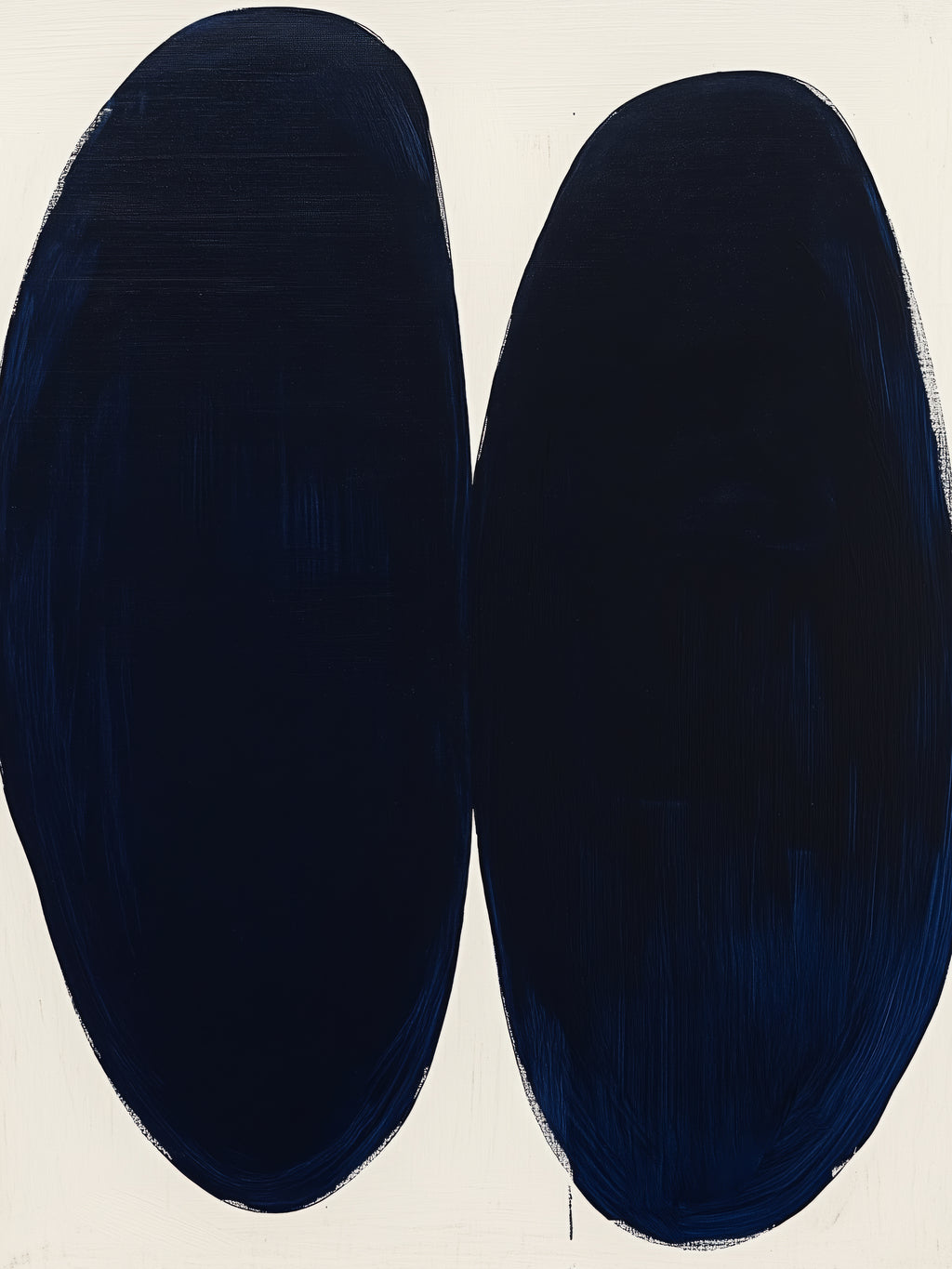 Duas formas ovais, profundas e escuras, lado a lado sobre um fundo claro. A simplicidade aparente guarda um espaço para interpretações infinitas — podem ser portais, sombras, presenças ou ausências. “Entre Dois Silêncios” é sobre pausas, sobre aquilo que não se diz, mas se sente. Ideal para composições minimalistas e ambientes de reflexão.