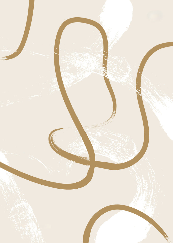 Linhas douradas se movem pelo espaço claro de forma solta e orgânica, criando a sensação de fluxo e liberdade. Uma composição que transmite leveza e espontaneidade.